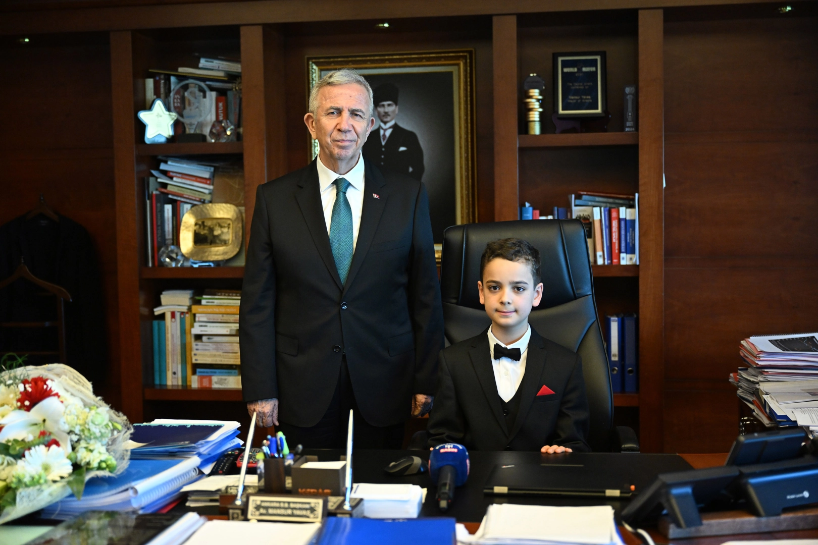 İl Milli Eğitim Şube Müdürü Ünsal Çolak’ın da katıldığı programda, farklı okullardan gelen ilkokul ve ortaokul öğrencileri temsili olarak Mansur Yavaş’ın belediye başkanlığı koltuğunu devraldı.