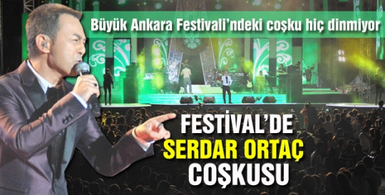 Büyükşehir Belediyesi tarafından bu yıl altıncısı düzenlenen “Büyük Ankara Festivali”nde gündüz eğlenen, yarışmalara katılan, yemeklerini yiyen Başkentliler, akşam da muhteşem konserlere katılmak için büyük sahneye akın ediyorlar. Yine on binlerin doldurduğu AKM alanında toplanan Başkentliler, hafta içi olmasına rağmen geç saatlere kadar eğlenerek, Serdar Ortaç coşkusu yaşadılar.